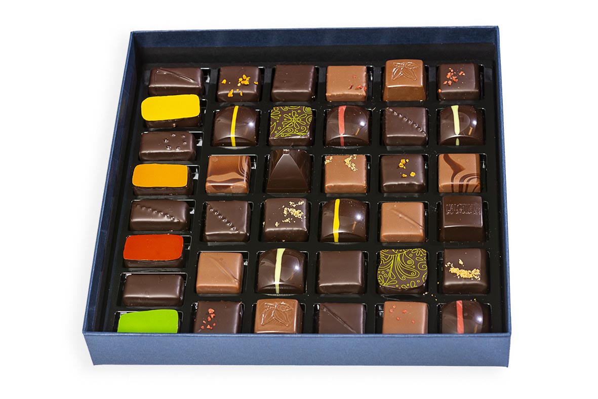 Chaque coffret renferme un assortiment raffiné de nos pralinés maison, soigneusement sélectionnés pour offrir un voyage unique au cœur de L’Alchimie du Chocolat.